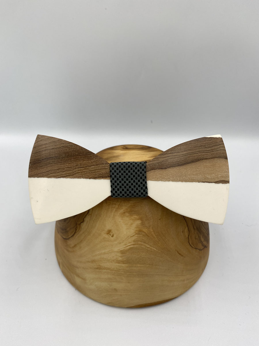 Raisin bow tie from olive wood with white color of raisin, the middle stripe has a grey-black color arranged in checkerboard pattern.